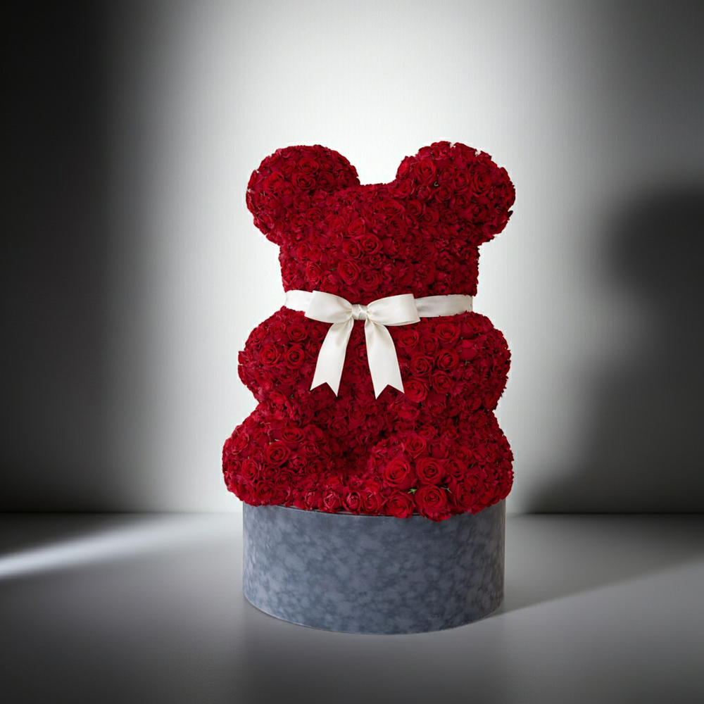 Each rose is carefully selected and arranged by our expert florists to create a flawless teddy bear silhouette, finished with an elegant ribbon and presented in a premium box for a truly luxurious touch.