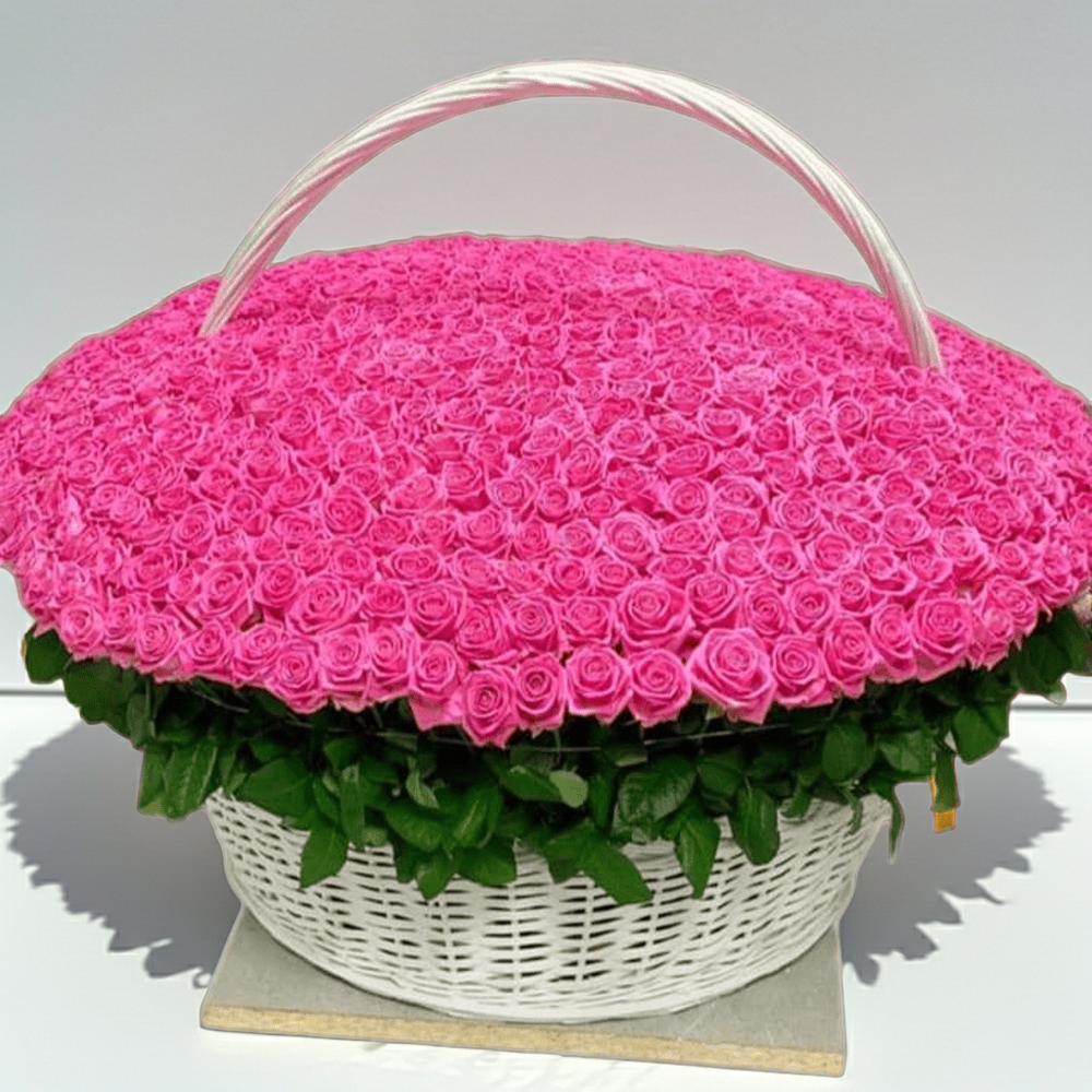 This Grand Pink Rose Luxury Basket is a masterpiece crafted for those who desire elegance on the highest level. Overflowing with hundreds of premium, handpicked pink roses, this arrangement is meticulously shaped into a perfect dome, symbolizing beauty, admiration, and sophistication.